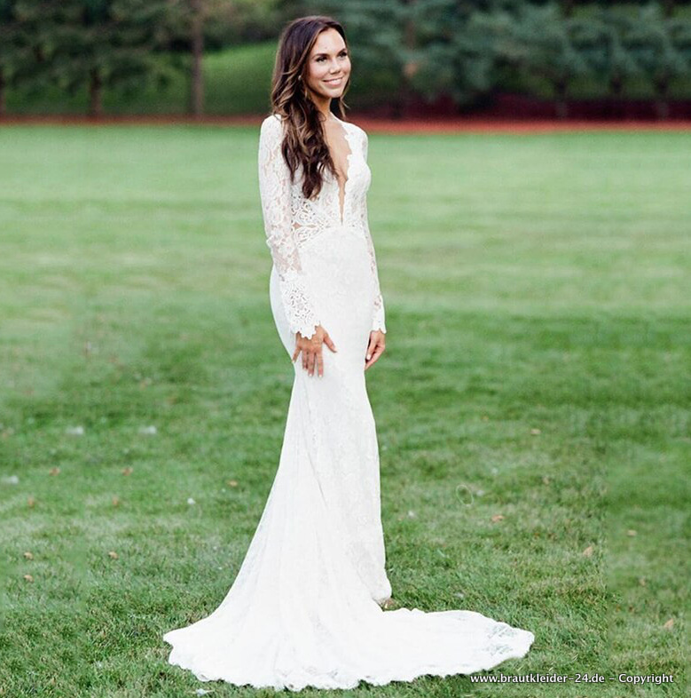 Bohostyle Meerjungfrau Langarm Brautkleid aus Spitze