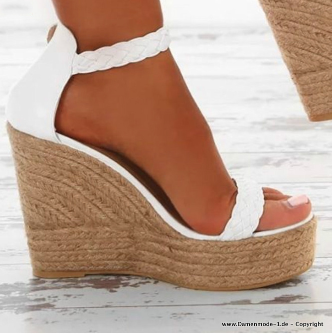 Plateau Keil Sommer Sandaletten in Beige Weiß