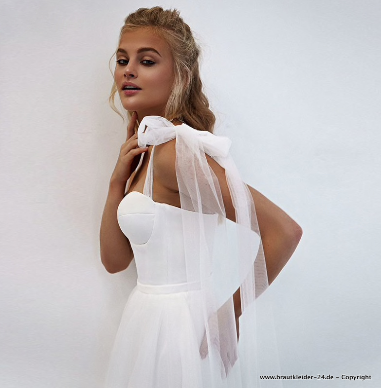 A Linie Standesamtkleid für die Braut mit Tüll und Schleife