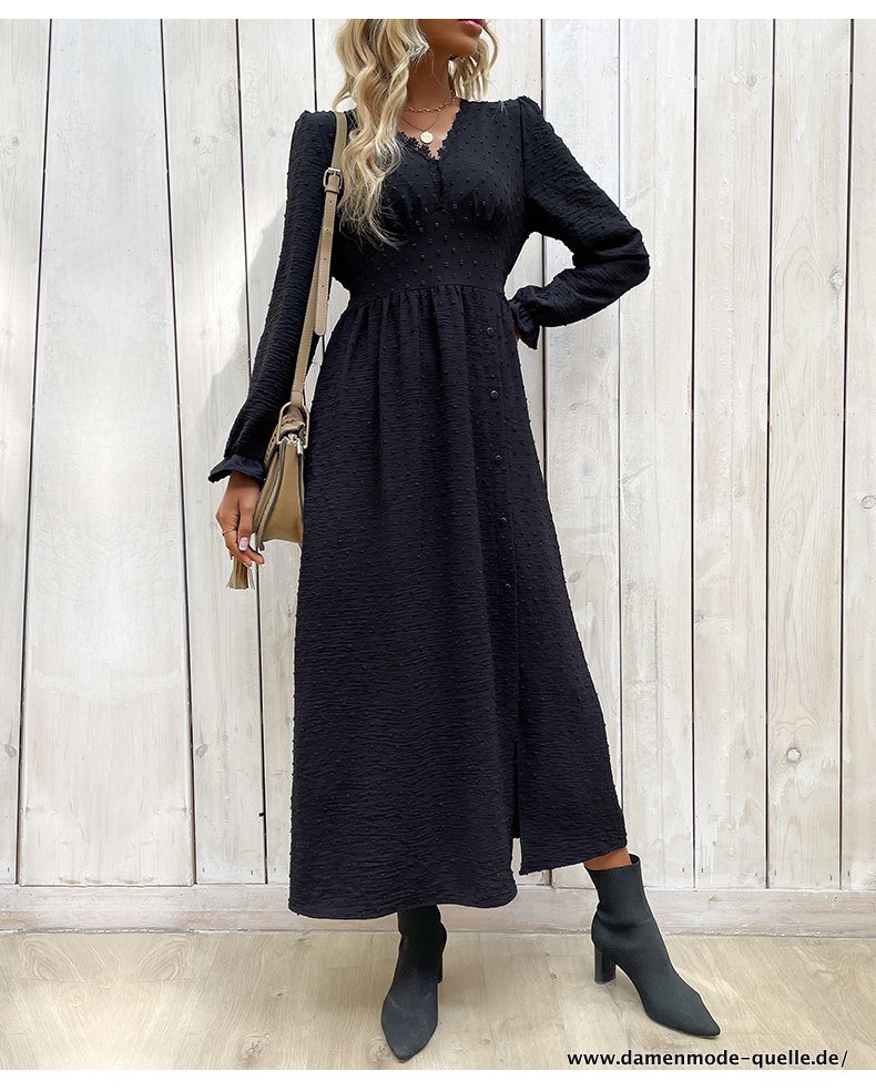 Elegantes Schwarzes Hohes V-Ausschnitt Sommerkleid