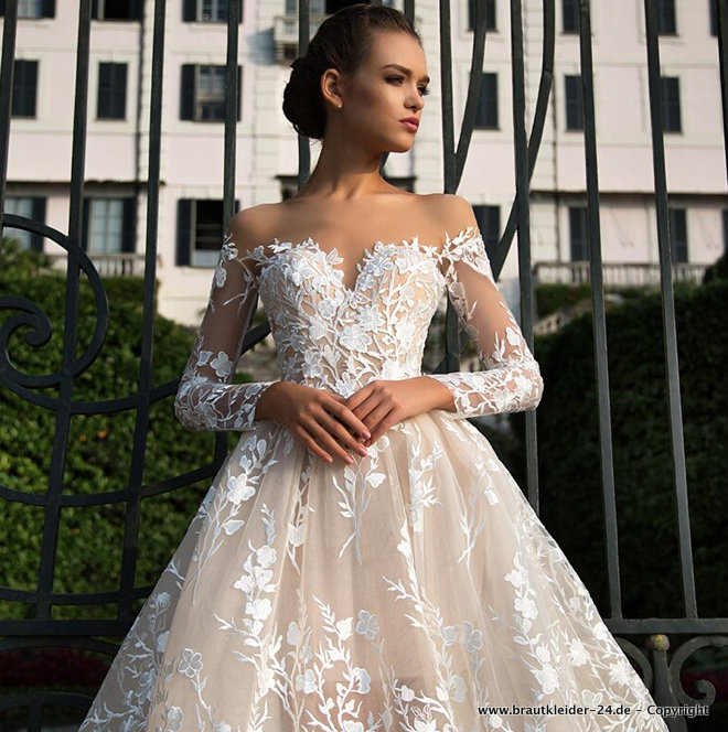 Langarm Brautkleid Hochzeitskleid mit Illusion Ausschnitt