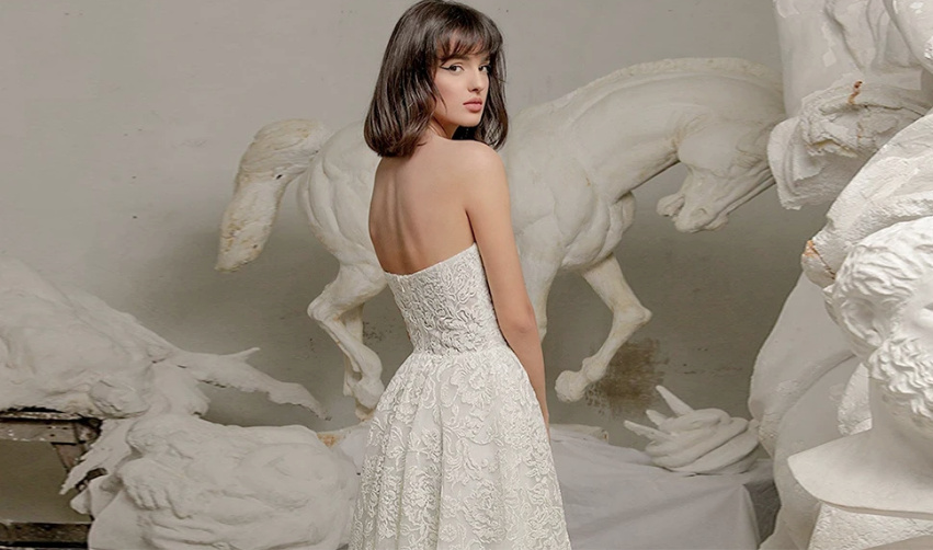 Schulterfreies Vintage Style Brautkleider Alana aus Spitze Knöchellang