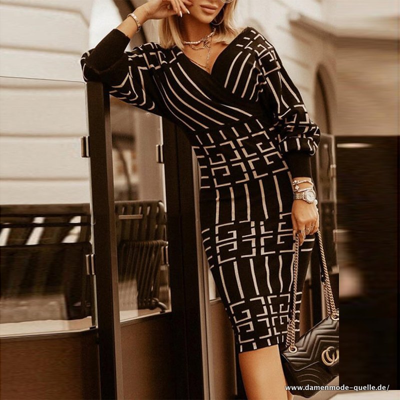 Top Kleid Sexy mit V-Ausschnitt Midi-Langes Kleid Schwarz