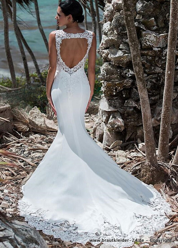 Meerjungfrau Brautkleid mit Sexy Rücken Ausschnitt und Schleppe