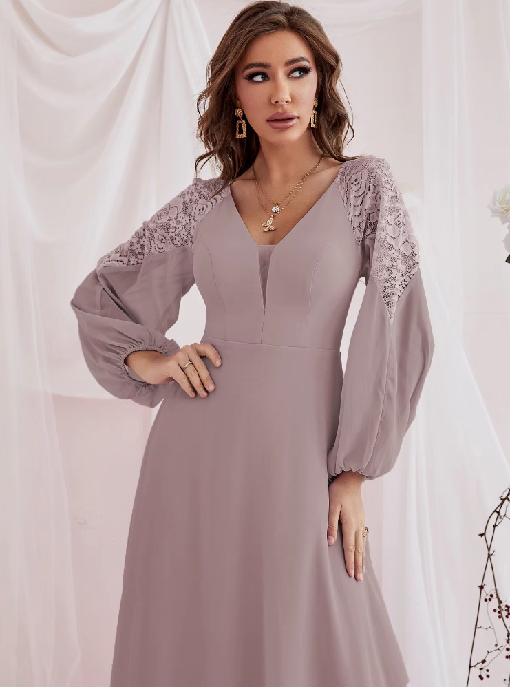 A Line Long Sleeve Dress Eve Elegant for Wedding Guests in Old Pink