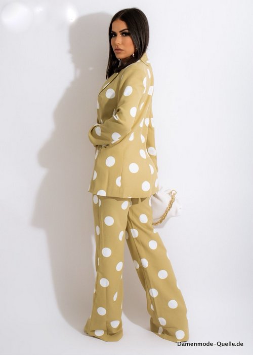 Damen 2er Set Outfit Einreiher Blazer und Gerade Hose als Anzug Khaki