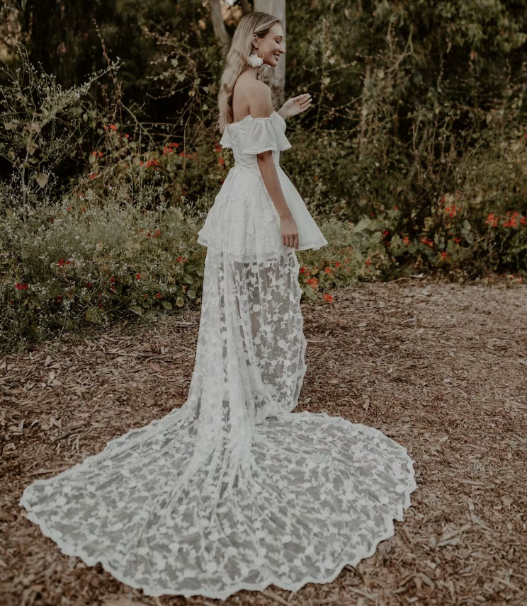Short Off-the-Shoulder Wedding Dress Edgarda Train Detachable