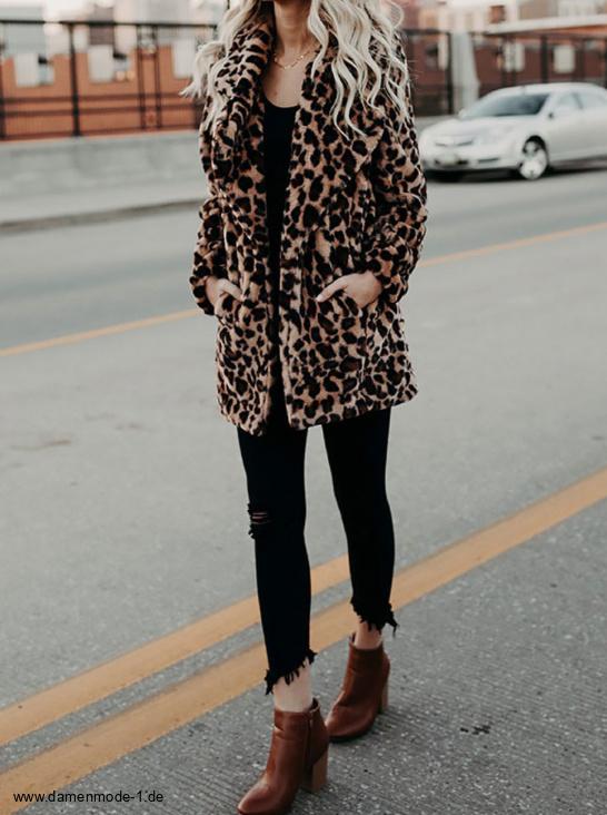 Leopard Print Plüsch Mantel für Damen