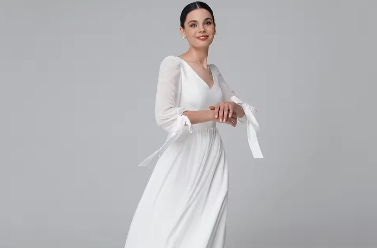A Line Long Sleeve Chiffon Civil Wedding Dress Eloise Calf Length