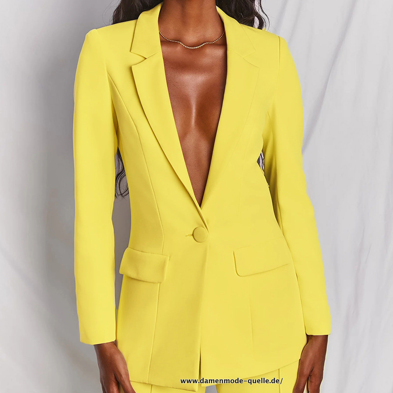 Damen Business Blazer Set Gelb Blazer Hosen set