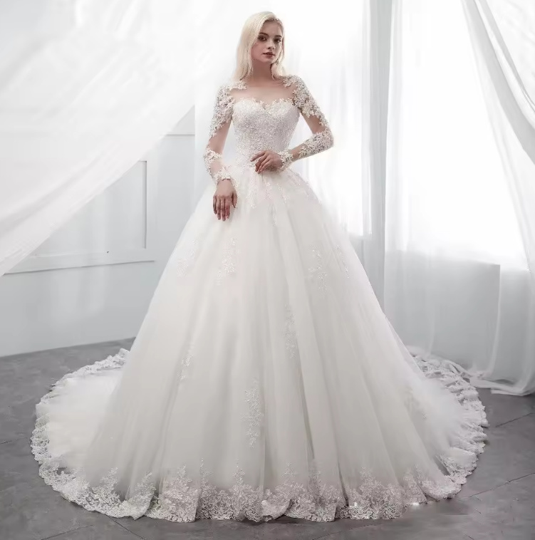 Klassisches Brautkleid Ernestine mit Ärmel aus Spitze und Schleppe
