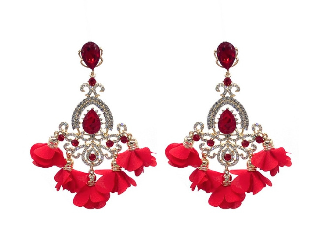 Crystal Luxury Rhinestone Flower Vintage Bridal Earrings Red