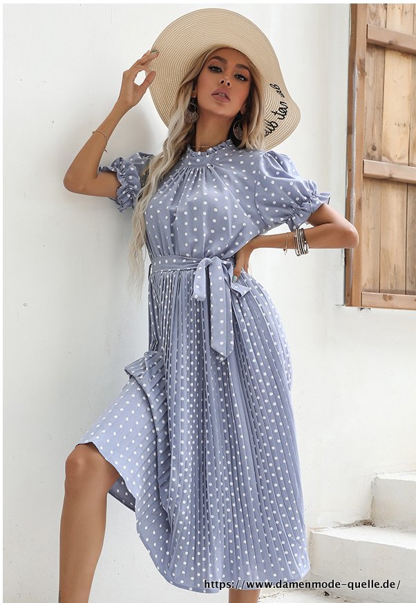 Elegantes Sommer Midi Plissee Kleid für Damen Vintage Kurzarm