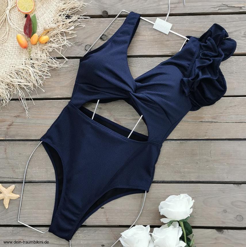 Vintage Style Badeanzug Zsanett mit Rüschen und V Ausschnitt Schwarz