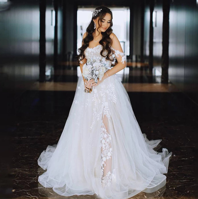 A Line Wedding Dress Bjelle with Sheer Pearls and Lace