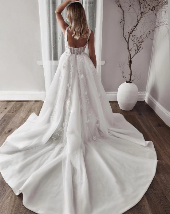 A line princess wedding dress Bibi with pearl straps and train