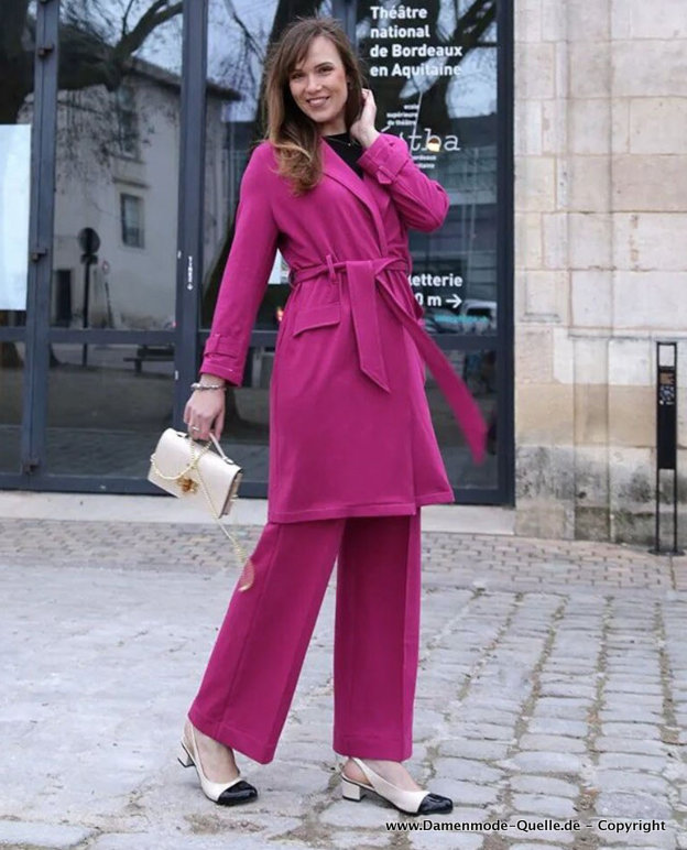 Women’s Pantsuit Elegant with Long Blazer in Fuchsia
