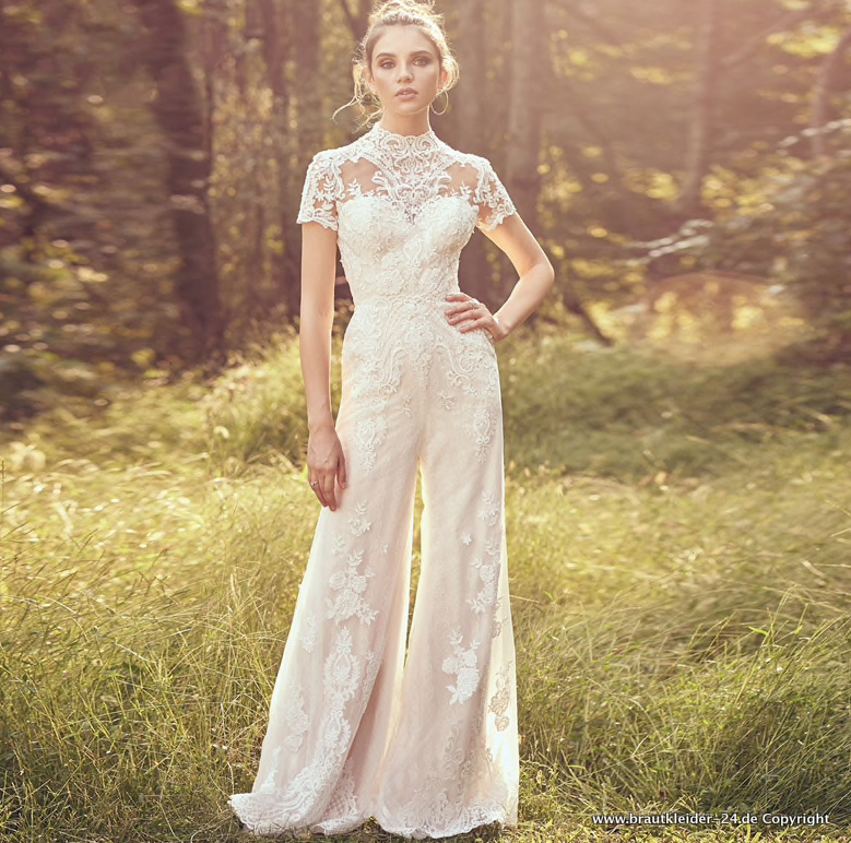 Luxus Jumpsuit Overall für den Standesamt Lang aus Spitze