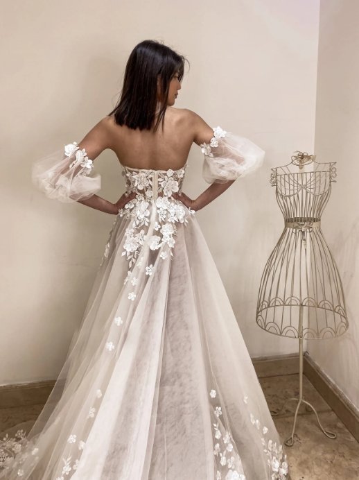 Off-the-shoulder floral boho wedding dress Berenike Romantic