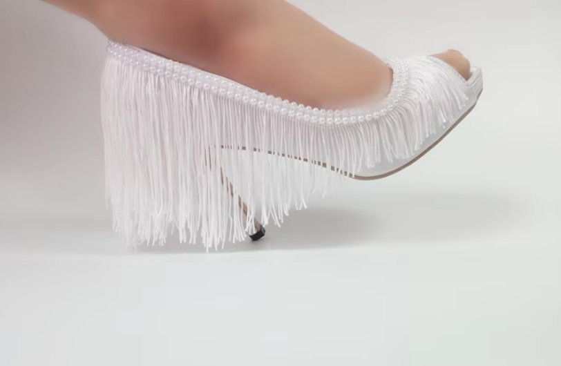 10 CM High Heels Brautschuhe Eija mit perlen und Franzen