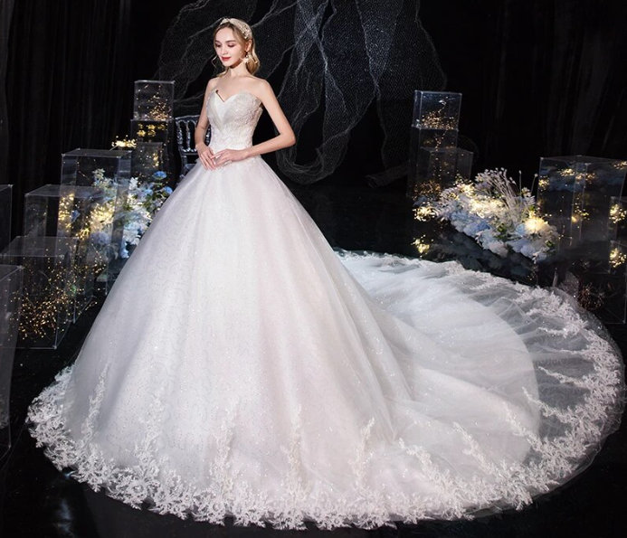 Ball Line Queen Wedding Dress Arianna Off Shoulder with Train and Lace