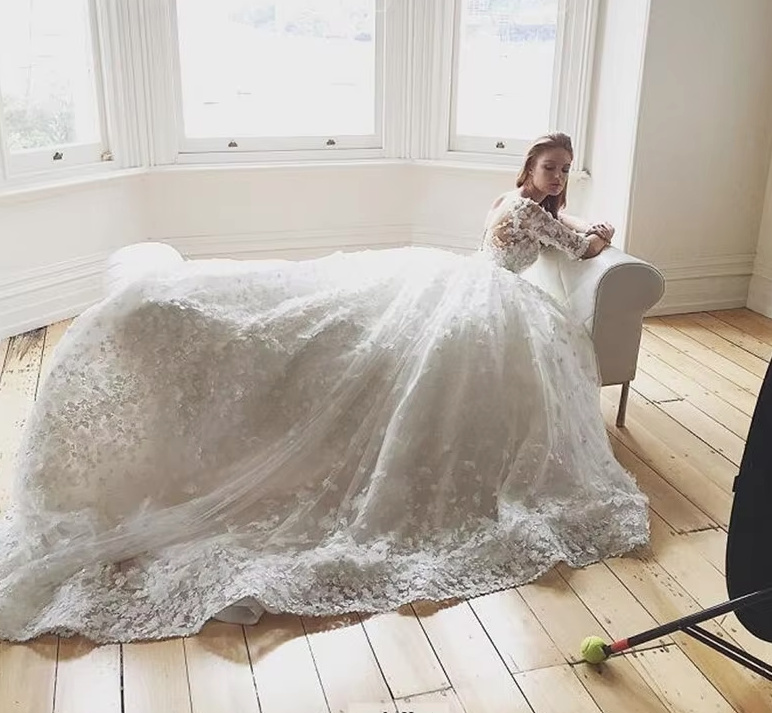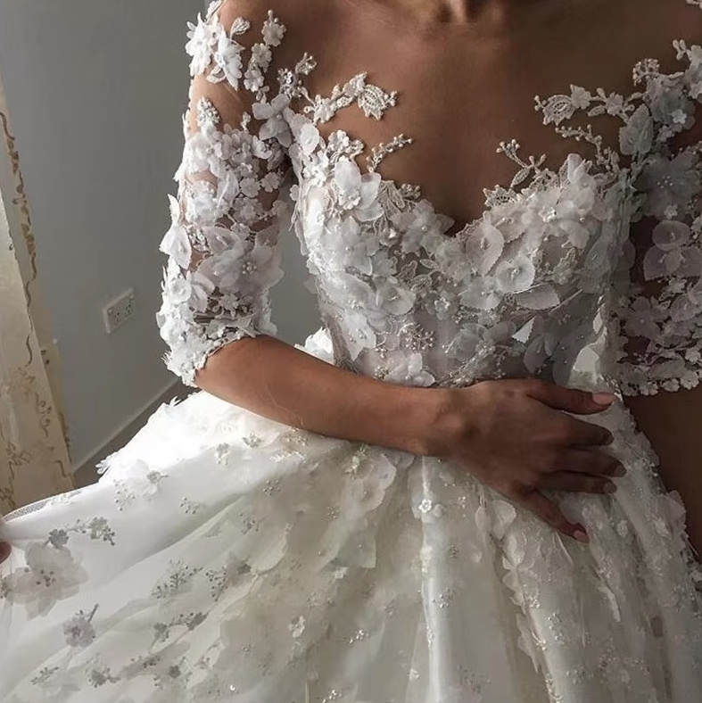Ball Linie Prinzessin Brautkleid Elektra mit Spitze Blumen und Schleppe