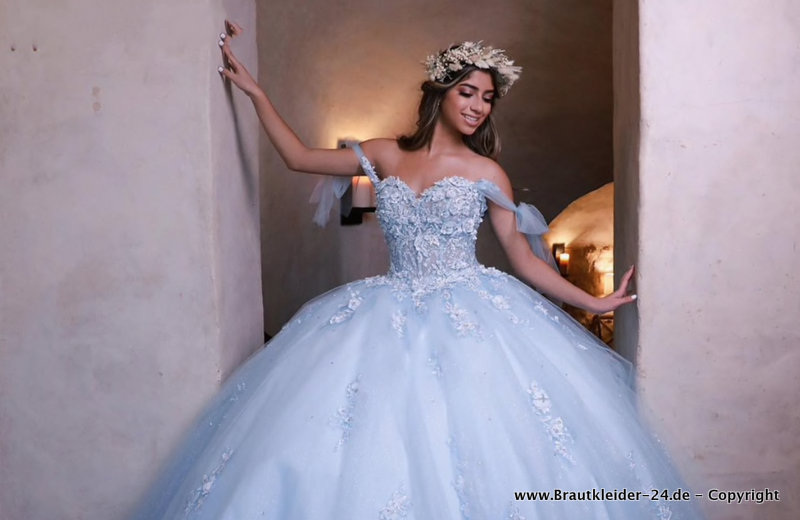 Perlen Brautkleid Quinceanera Kleid in Himmelblau mit Stickereien