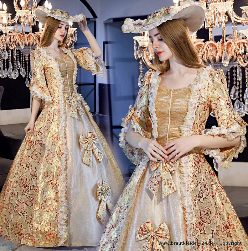 Rokoko Barock Brautkleid Marou mit Stickereien in Champagne