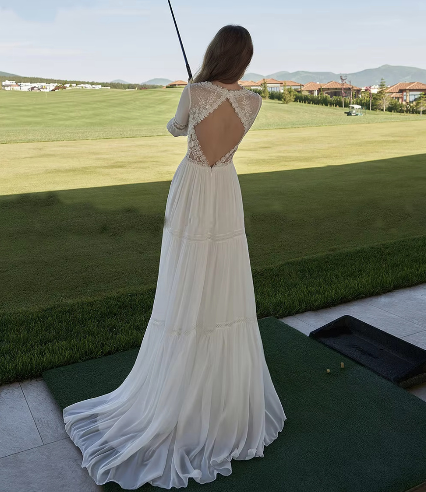 A line long sleeve boho wedding dress Eyleen with lace and back neckline