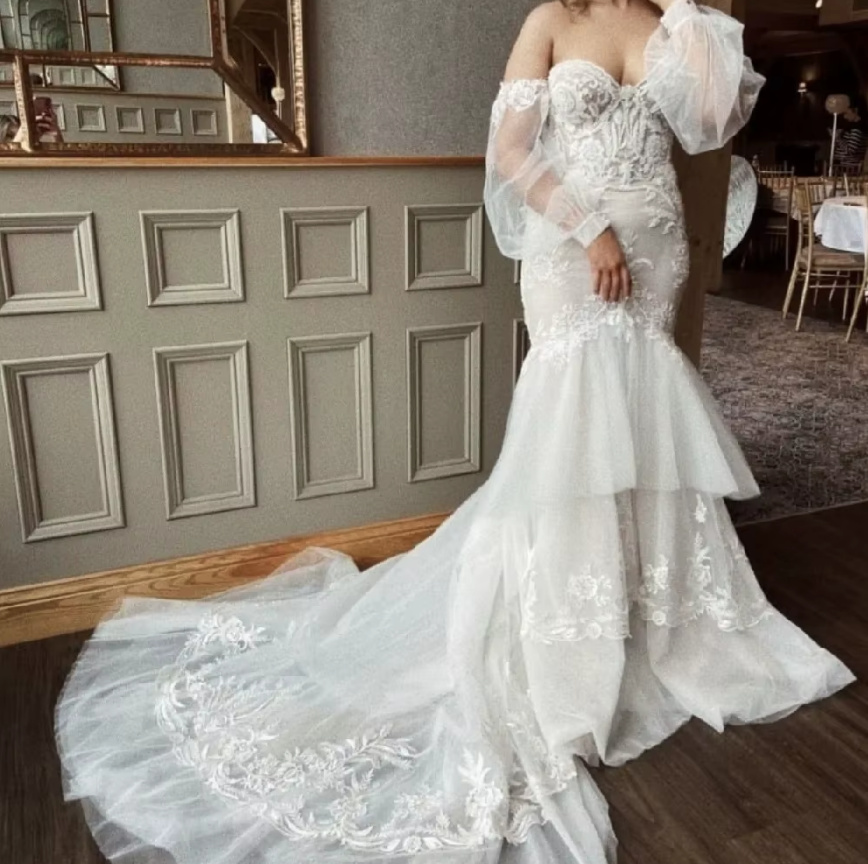 Boho Style Mermaid Wedding Dress Erna Off Shoulder Lace and Train