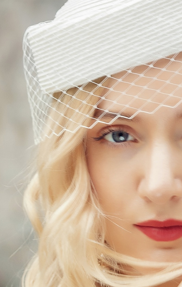 Bridal Hat Cocktail Derby Hat Danica with Veil in White