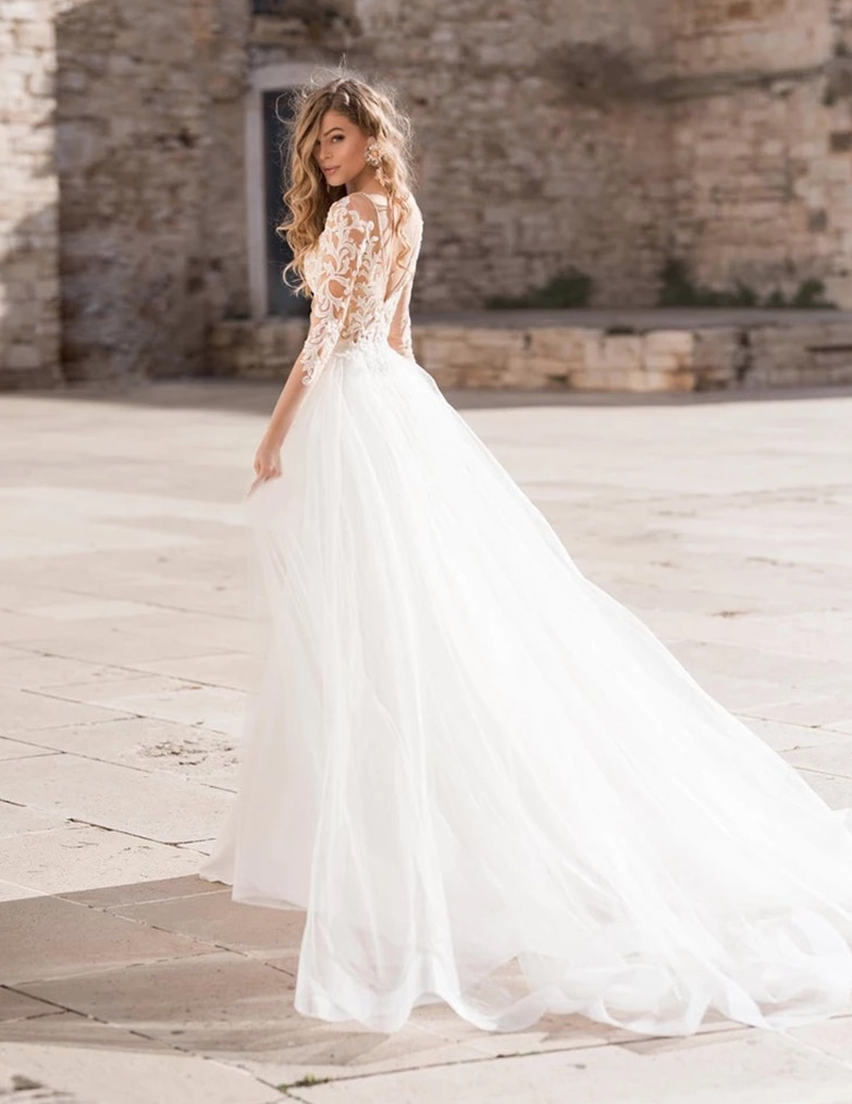 I Line Wedding Dress Delia with Lace and Detachable Train