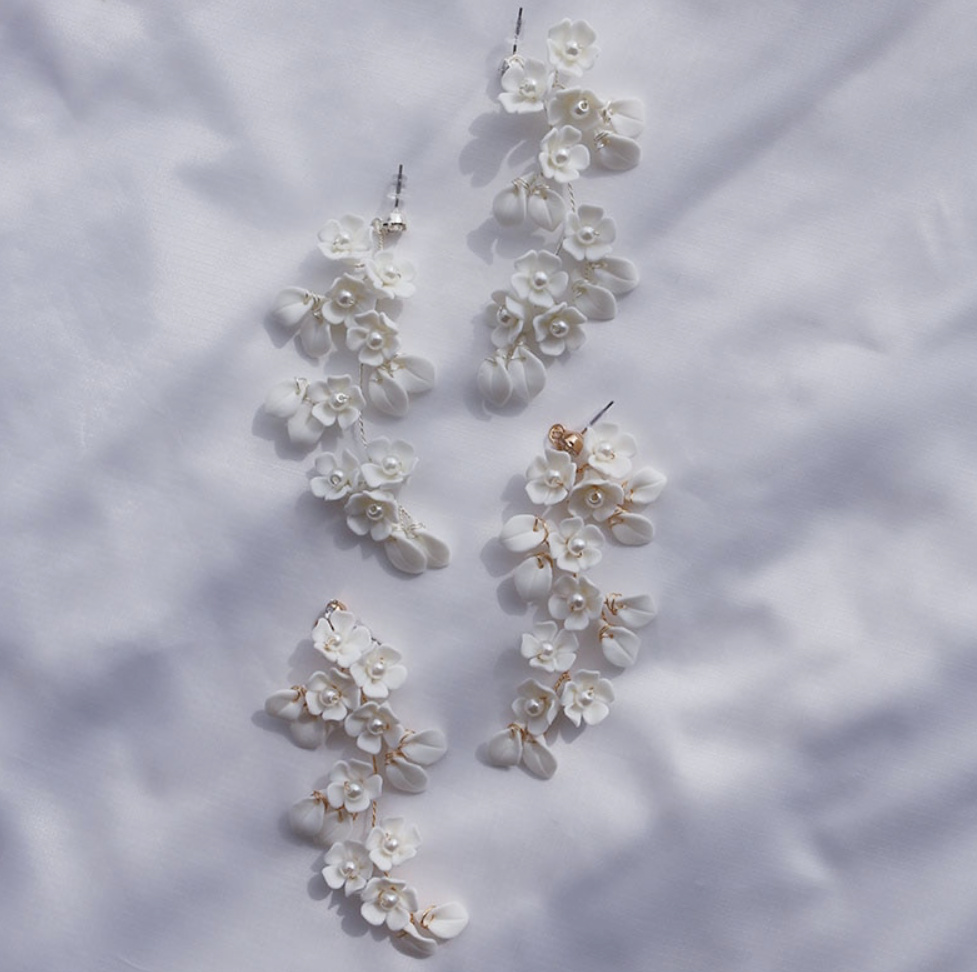 Porcelain Flower Bridal Earrings Delenn Silver or Gold