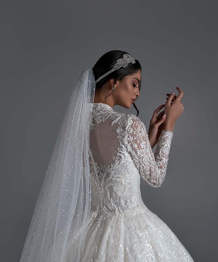 Hochzeitskleid High Neck Vintage Ballkleid Langarm