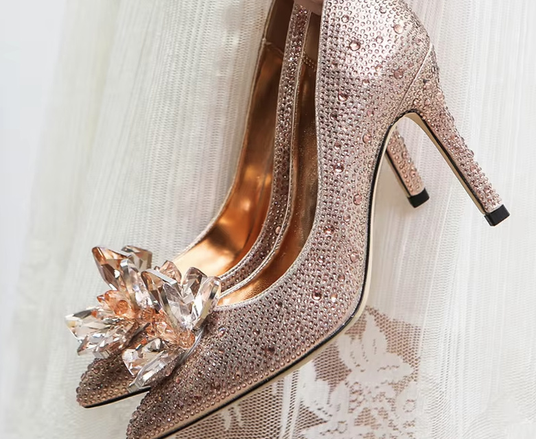 Glitter High Heels Bridal Shoes Eluana Gold with Diamond Flower Heel 5 – 7 or 9 cm