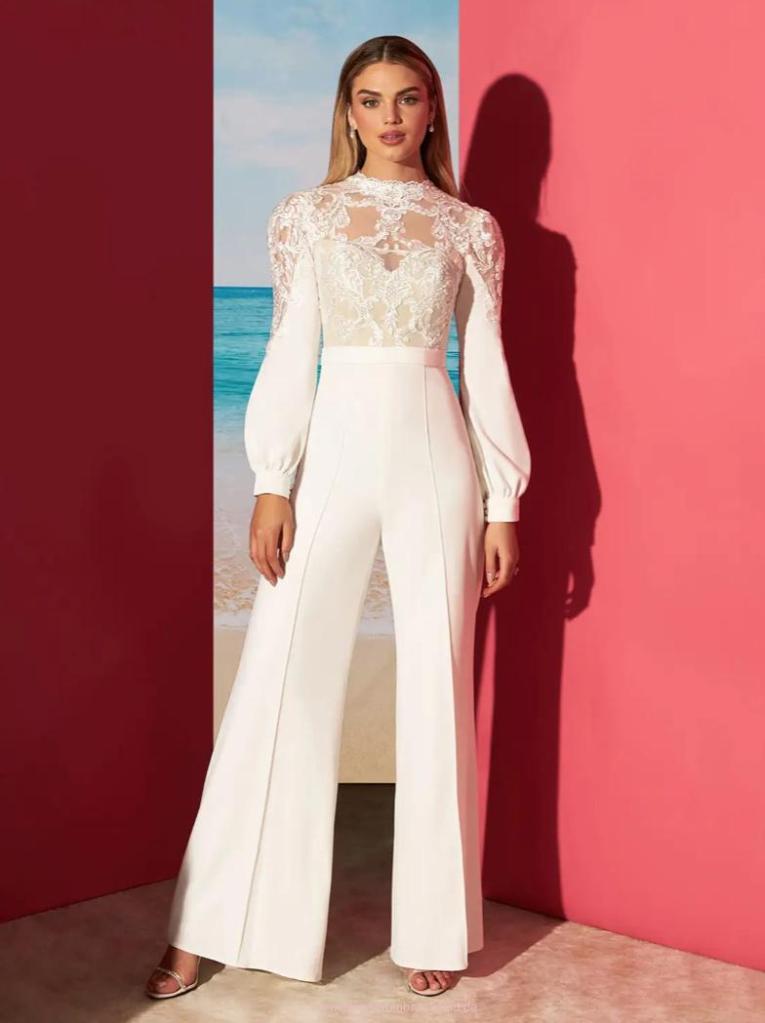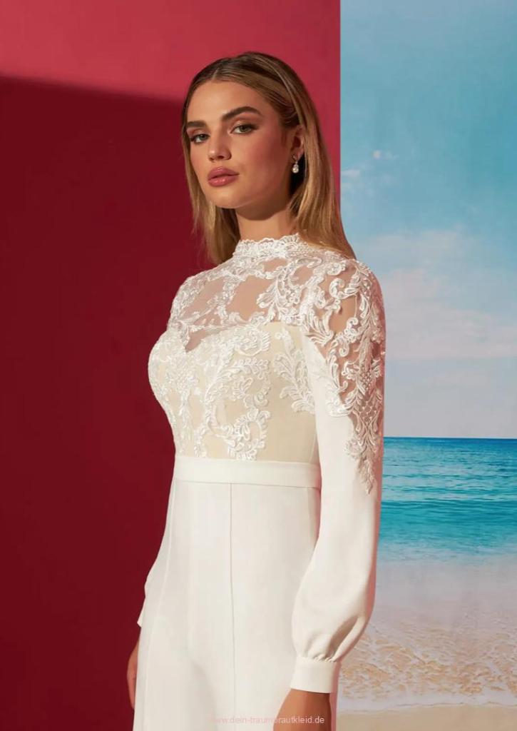 Langarm Braut Overall Jumpsuit Ida mit Spitze Festlich