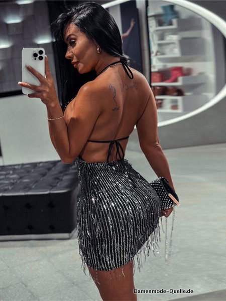 Sexy Neckholder Mini Kleid Outfit für Damen Schwarz