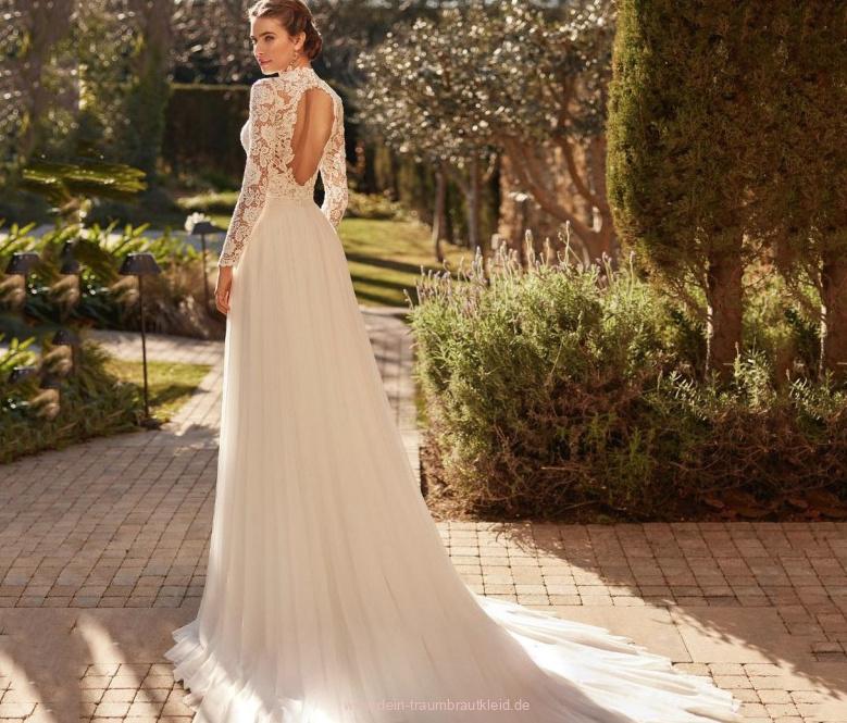 Standesamtkleid Overall Einteiler für die Braut mit Spitze und Schleppe