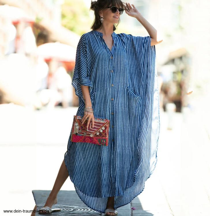 Beach Cuver Up Kurzarm Strandkleid Zanina Lang Blau Gestreift