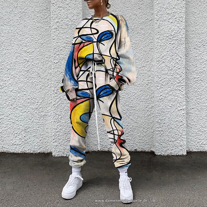 Damen Streetwear Trend Set Damen Rundhals Sportswear Blaue Linie