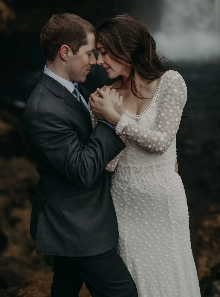 Fit and Flare Boho Long Sleeve Wedding Dress Elke with Lace and Train