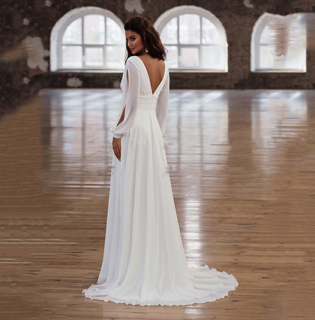 Chiffon Wedding Dress Fiona Floor Length with Cut Out Sleeves