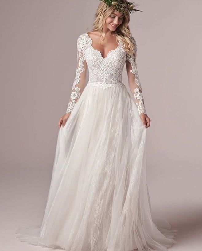 Long Sleeve Boho Wedding Dress Floriane with Tulle Skirt Floor Length