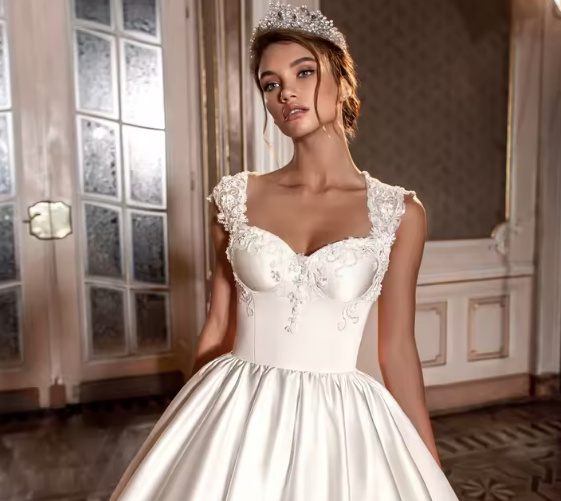 Luxury Satin A Line Wedding Dress Elisa with Train and Appliques