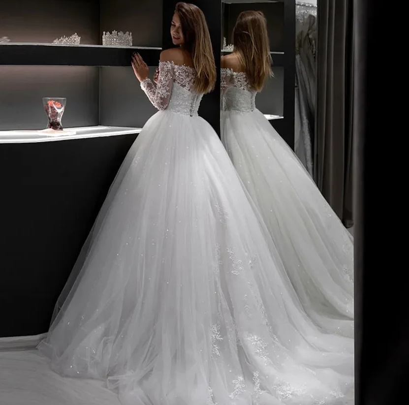 Schulterfreies Langarm Brautkleid Alessa mit Tattoo Spitze und Schleppe