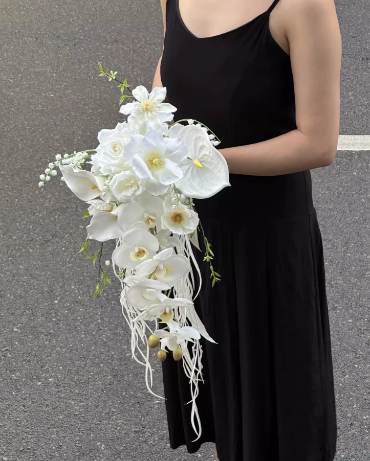 Wasserfall Hochzeit Bouquet Brautstrauß Eileen Weiß mit Orchideen und Calla