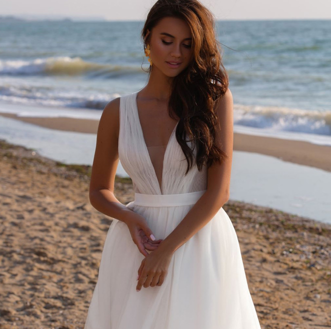 A-line V-neck Beach Wedding Dress Fenna Floor Length