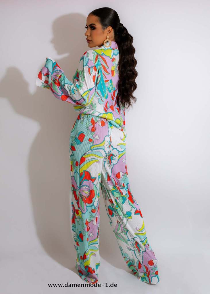 Blumendruck Damen Set Shirt Top und Hose in Hellblau