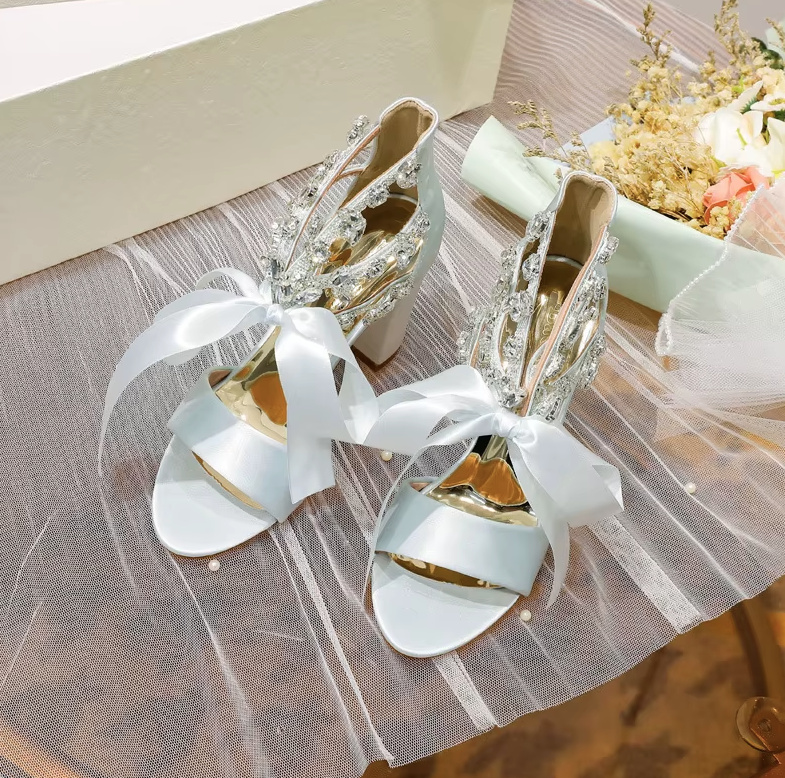 Satin Crystal Bridal Sandals Wedding Shoes in Light Blue