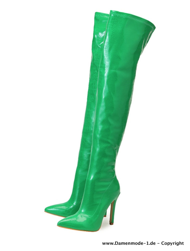 Winter Stiletto Heels Overknees in Grün Sexy
